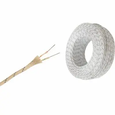 Specify thermocouple type (K, J, T), cable function (compensation or extension), insulation type (PVC, silicone, PTFE), number of pairs, conductor cross-section, shield option, and colour code standard (IEC or ANSI) when ordering. Standard stock items are available in single-pair PVC and silicone insulated K-type from 10 m. Non-standard types, multi-pair configurations, and PTFE insulated cables are available from 100 m MOQ.