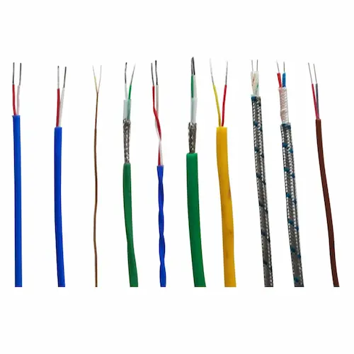 KC type thermocouple compensation cable is a specialised signal cable for transmitting the low-level EMF signal generated by a Type K thermocouple sensor to its temperature measurement instrument or controller. The “KC” designation indicates that this is a compensation-grade cable — the conductor alloys are specifically selected to match the thermoelectric output of a Type K (Chromel/Alumel) thermocouple within the ambient temperature range typically encountered along the cable routing path, preventing the parasitic junction EMF errors that would occur if standard copper cable were used in the signal path.